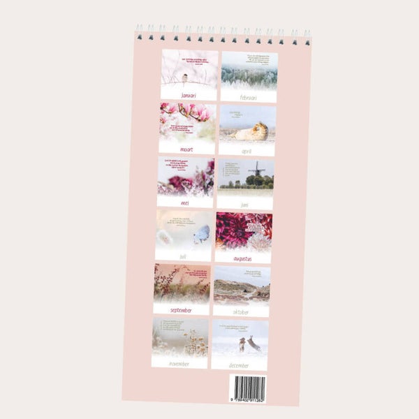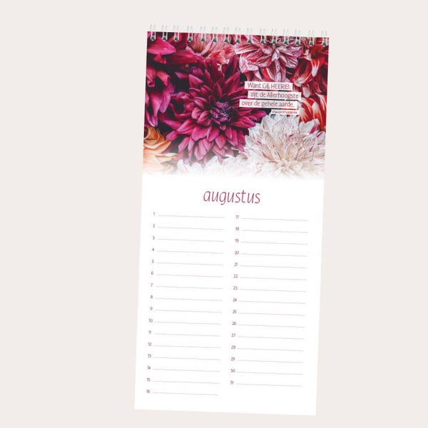 Ooit een een verjaardag vergeten? Oeps! Deze fraaie staande kalender van Terdege helpt je een handje met het onthouden van belangrijke data, zoals alle verjaardagen. Er staat geen jaartal op de kalender, dus je kunt 'm lang gebruiken. Om gezellig op te hangen in de wc, de keuken, de gang of waar dan ook in huis. Op elke pagina staat een Bijbeltekst in de Statenvertaling.