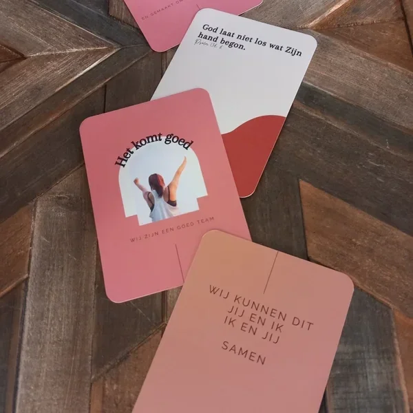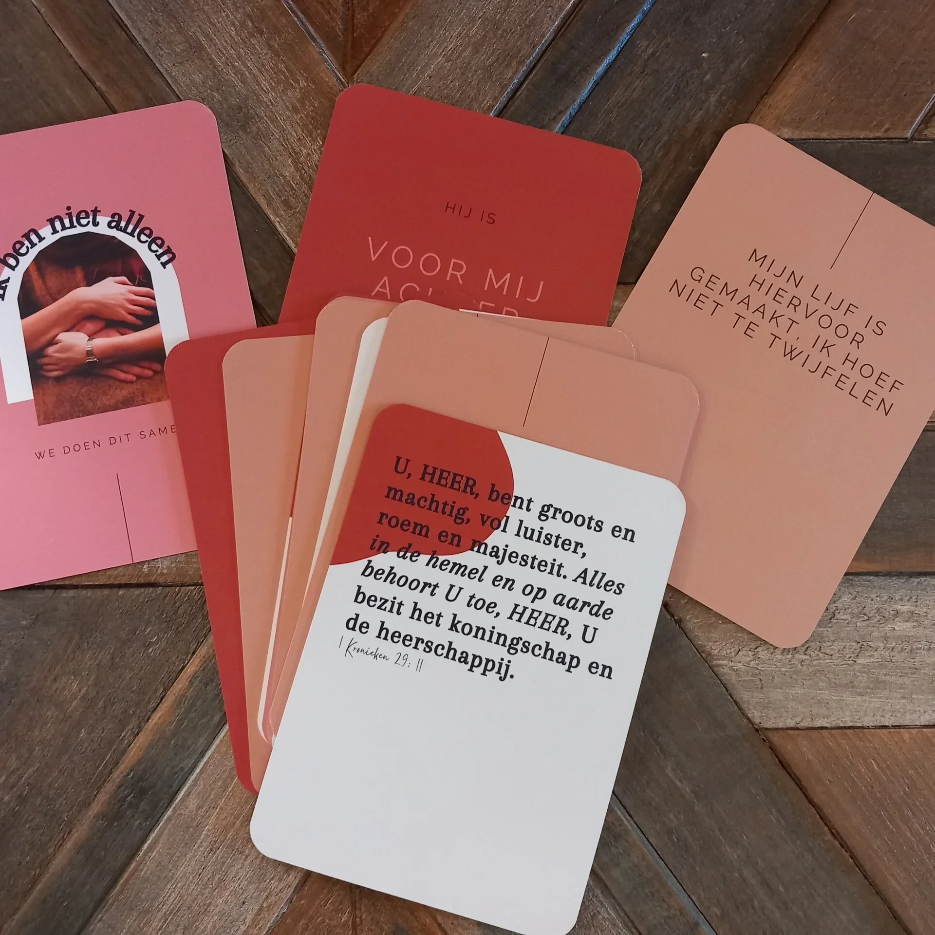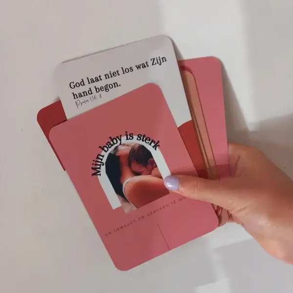 12 Christelijke dubbelzijdige affirmatiekaarten speciaal voor jouw bevalling. Vol inspirerende bemoedigingen, krachtige one-liners en prachtige Bijbelteksten. Gedrukt op stevig A6-formaat (300 grams papier). Gebruik ze om een slinger te maken, of lees ze vooraf ter ondersteuning en kracht. Ook perfect als cadeau, schitterend verpakt – voor een ander of voor jezelf. Van Poiēma: woorden en beelden die je raken.