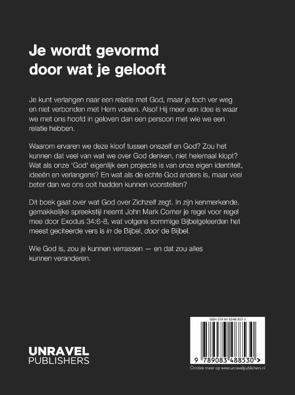 Je wordt gevormd door wat je gelooft. Je kunt verlangen naar een relatie met God, maar je toch ver weg en niet verbonden met Hem voelen. Alsof Hij meer een idee is waar we met ons hoofd in geloven dan een persoon met wie we een relatie hebben. Waarom ervaren we deze kloof tussen onszelf en God? Zou het kunnen dat veel van wat we over God denken, niet helemaal klopt? Wat als onze 'God' eigenlijk een projectie is van onze eigen identiteit, ideeën en verlangens? En wat als de echte God anders is, maar veel beter dan we ons ooit hadden kunnen voorstellen? Dit boek gaat over wat God over Zichzelf zegt. In zijn kenmerkende, gemakkelijke spreekstijl neemt John Mark Comer je regel voor regel mee door Exodus 34:6-8, wat volgens sommige Bijbelgeleerden het meest geciteerde vers is in de Bijbel, door de Bijbel. Wie God is, zou je kunnen verrassen — en dat zou alles kunnen veranderen.
