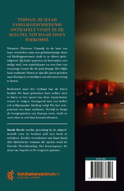In 'De verdwenen kledingmaakster' van Sarah Steele staat het huwelijk van Florence Connelly op het punt te stranden door een ingrijpend verlies. Na het overlijden van haar oma lijkt Flo ook de vreugde in haar grootste passie, het ontwerpen en maken van kleding, volledig te zijn kwijtgeraakt. Alles verandert echter wanneer ze in het huis van haar oma een bijzondere doos vindt. De doos bevat kledingpatronen uit de jaren zestig, elk vergezeld door een stukje stof, een foto van een jonge vrouw in een elegante jurk en een ansichtkaart uit Europa. Op elke kaart prijkt dezelfde naam: Nancy Moon.