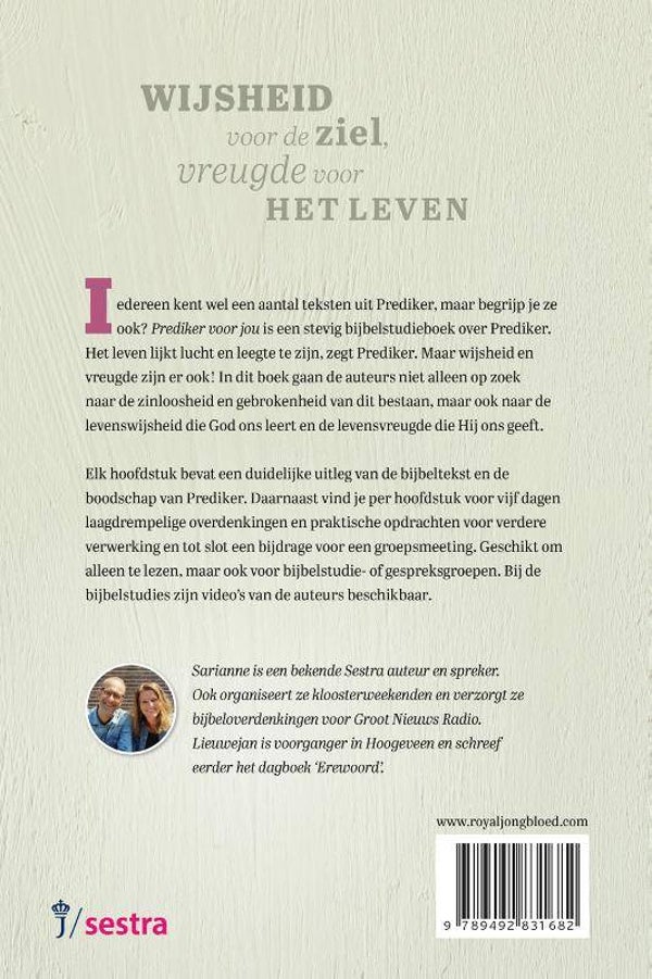 Veel mensen kennen enkele bekende teksten uit Prediker, maar begrijp je wat ze echt betekenen? Prediker voor jou is een diepgaand bijbelstudieboek dat je helpt deze bijzondere bijbelteksten beter te begrijpen. Prediker spreekt over het leven als lucht en leegte, maar laat ook zien dat er wijsheid en vreugde te vinden zijn. In dit boek zoeken de auteurs niet alleen naar de gebrokenheid en schijnbare zinloosheid van het bestaan, maar juist ook naar de levenswijsheid die God ons wil leren en de vreugde die Hij ons geeft. Elk hoofdstuk biedt een heldere uitleg van de bijbeltekst en de kernboodschap van Prediker. Daarnaast vind je toegankelijke overdenkingen en praktische opdrachten om wat je leest in je eigen leven toe te passen. Het boek is ideaal om zelf te lezen, maar ook zeer geschikt voor bijbelstudiegroepen of gesprekskringen. Bovendien zijn er bij de bijbelstudies inspirerende video’s van de auteurs beschikbaar om je verder te verdiepen.