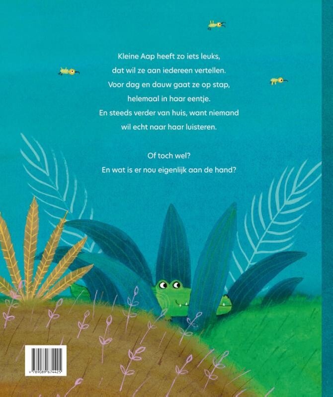 Kleine Aap heeft iets zó bijzonders, dat ze het met iedereen wil delen. Vroeg in de ochtend, nog voordat de zon opkomt, gaat ze op pad – helemaal alleen. Ze dwaalt steeds verder van huis, omdat niemand echt naar haar lijkt te luisteren. Of luisteren ze misschien toch? En wat is er eigenlijk aan de hand?