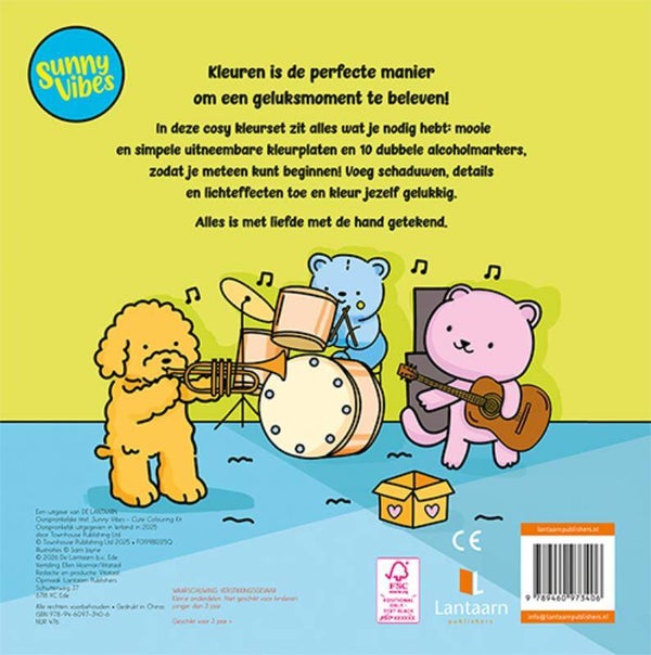 Met de 'Sunny Vibes Cute Kleurset' verschijnt er meteen een glimlach op je gezicht! Na het succes van de Cosy kleurset introduceert Sunny Vibes een onweerstaanbare nieuwe editie, vol schattige vriendjes. Deze luxe kleurset bevat meer dan 40 vrolijke, uitneembare kleurplaten en 10 dubbele alcoholmarkers, zodat je direct aan de slag kunt. De markers zijn veelzijdig, met een puntige tip voor fijne lijnen en een brede punt voor grotere vlakken. Dit maakt ze perfect om schaduwen, details en lichteffecten aan te brengen. Elk element in deze set is ontworpen voor een ultiem relaxmoment, van de lieve illustraties tot het hoogwaardige papier dat je een fijne werkomgeving biedt. Deze kleurset is ideaal voor iedereen die houdt van creativiteit, kawaii-stijlen en zachte kleurencombinaties. De vellen scheuren moeiteloos uit langs de perforatielijn en zijn perfect om te bewaren, cadeau te doen of om op te hangen.