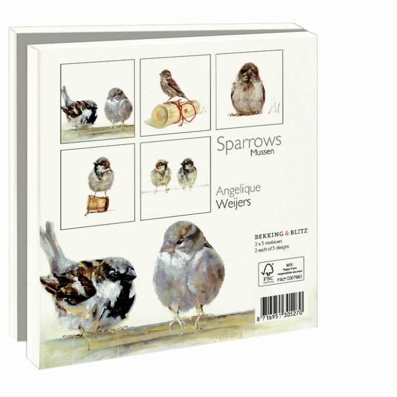 Kaartenmapje met enveloppen - vierkant - Sparrows - Angelique Weijers