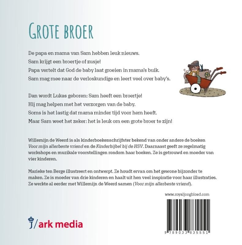 'Grote broer' is een herkenbaar, mooi vormgegeven boekje voor kinderen die een broertje of zusje krijgen... of al hebben. Zeker geschikt als cadeau om bij zwangerschap of geboorte te geven. Een leuk cadeau voor de grote broer natuurlijk! Straks lekker voorlezen! Ook beschikbaar: Grote zus (ISBN 9789033835568)